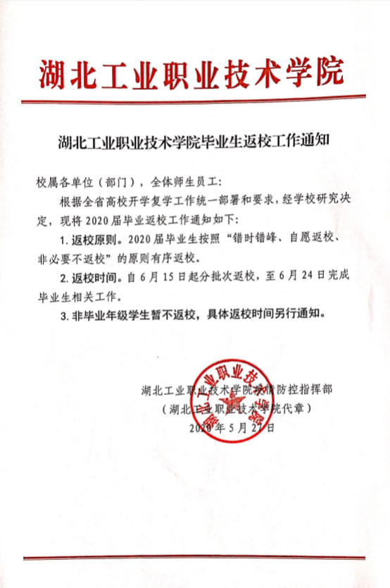湖北工业职业技术学院毕业生返校工作通知